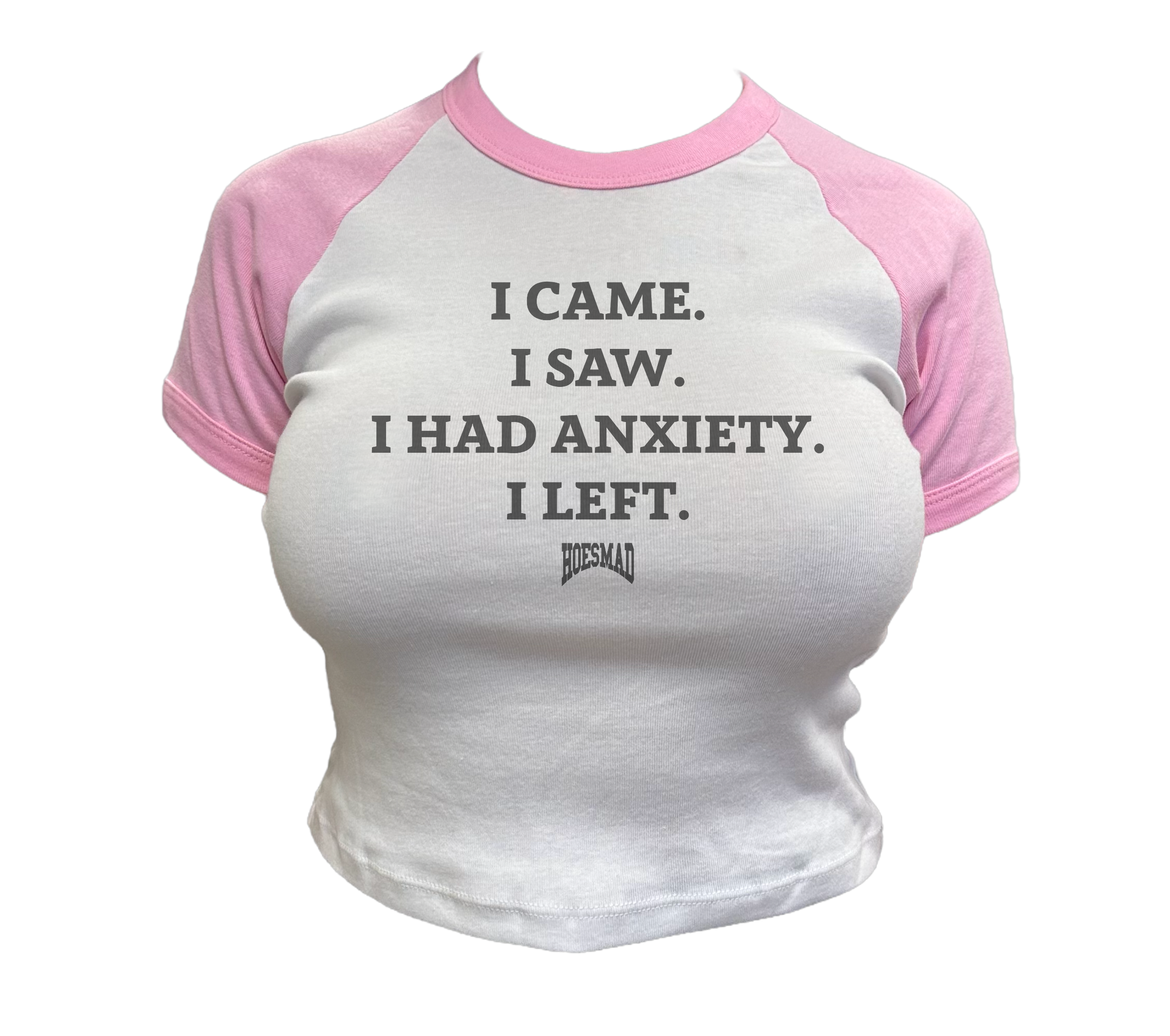 ANXIETY HOESMAD BABY TEE - PINK/white