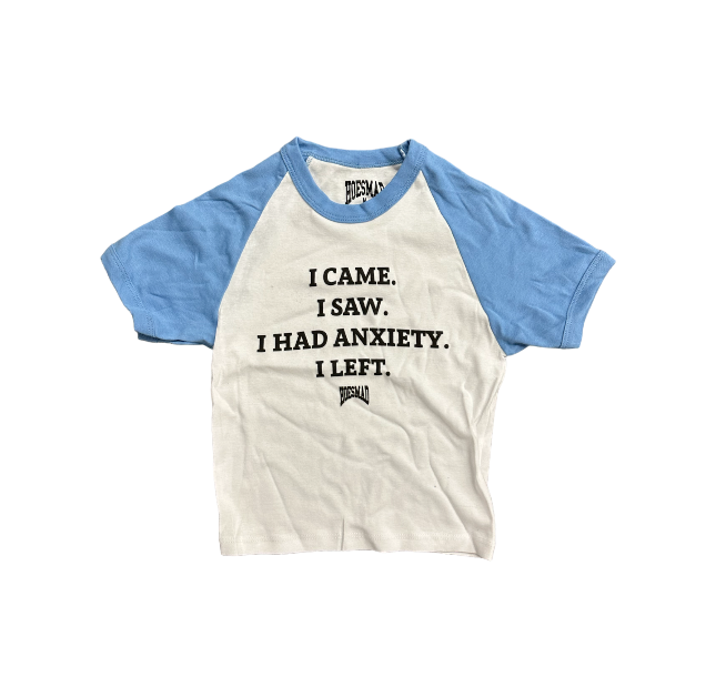 ANXIETY HOESMAD BABY TEE - baby blue/white