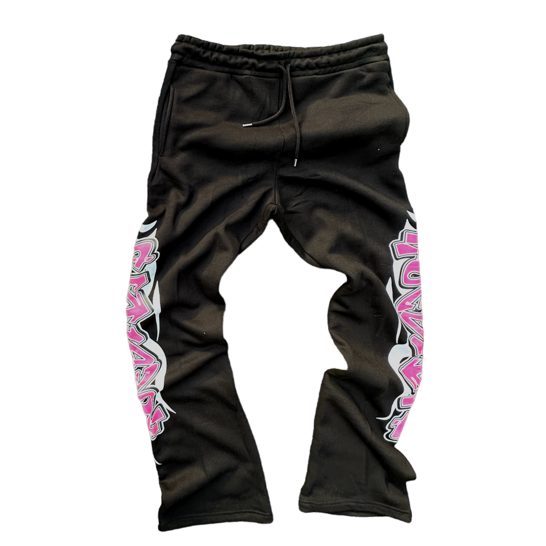 HOESMAD GRAFFITI FLARED STACKED PANTS - BLACK