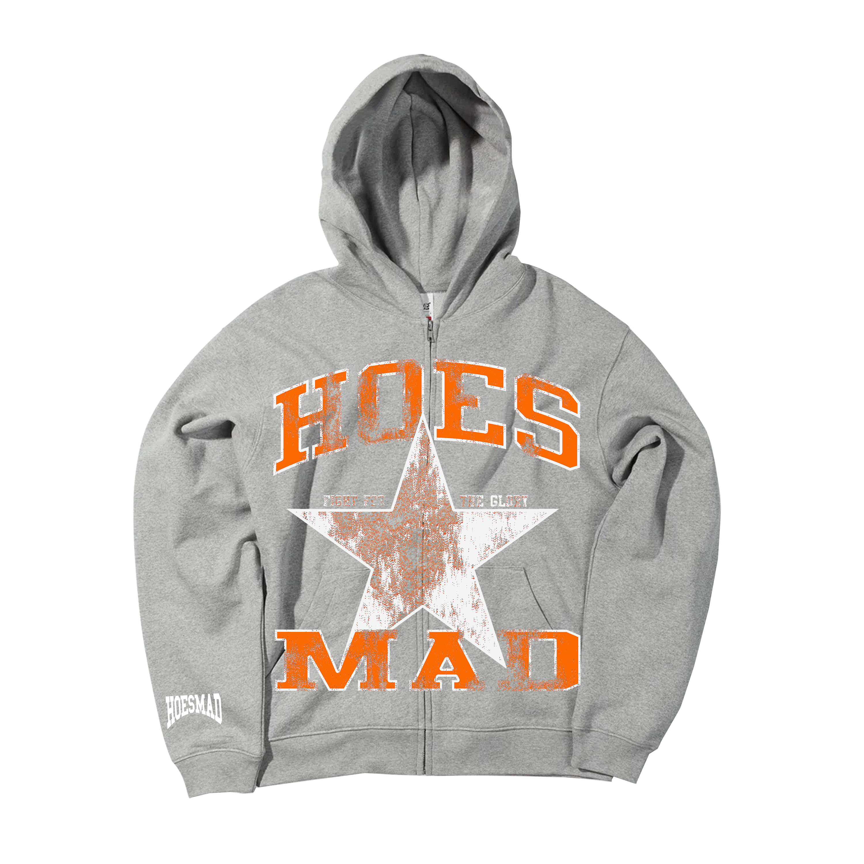 Hoes Mad Fight For Glory Zip Up Hoodie (Grey/Orange)