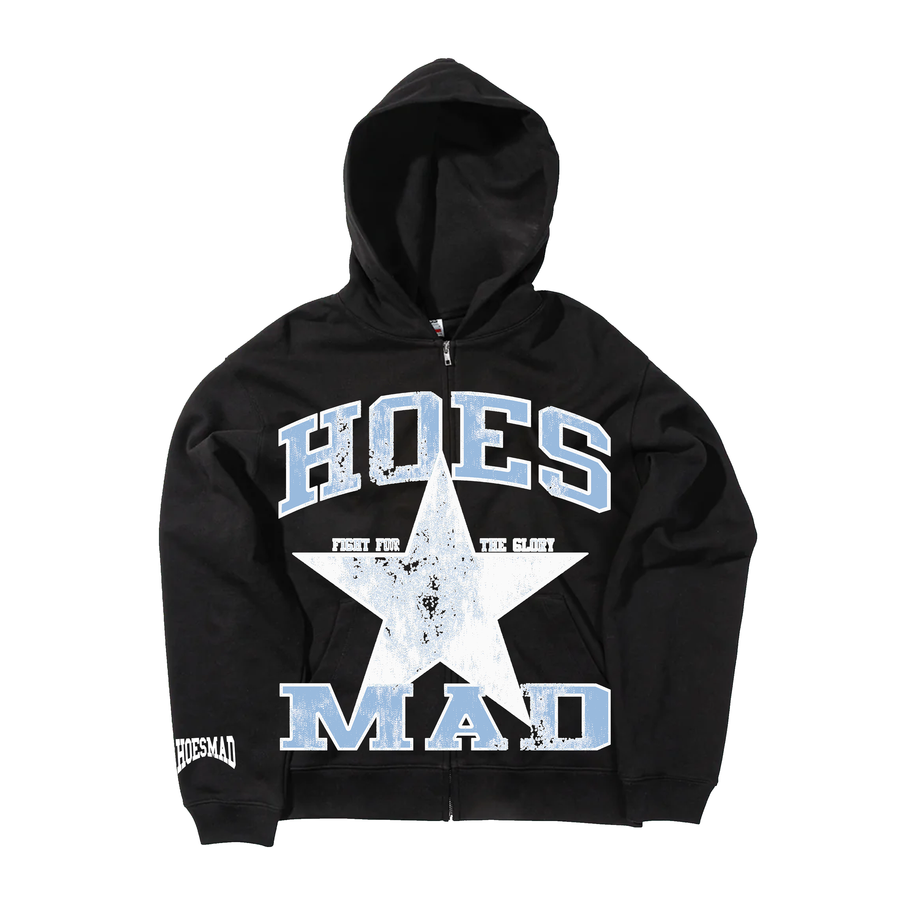 Hoes Mad Fight For Glory Zip Up Hoodie (Black/Carolina Blue)
