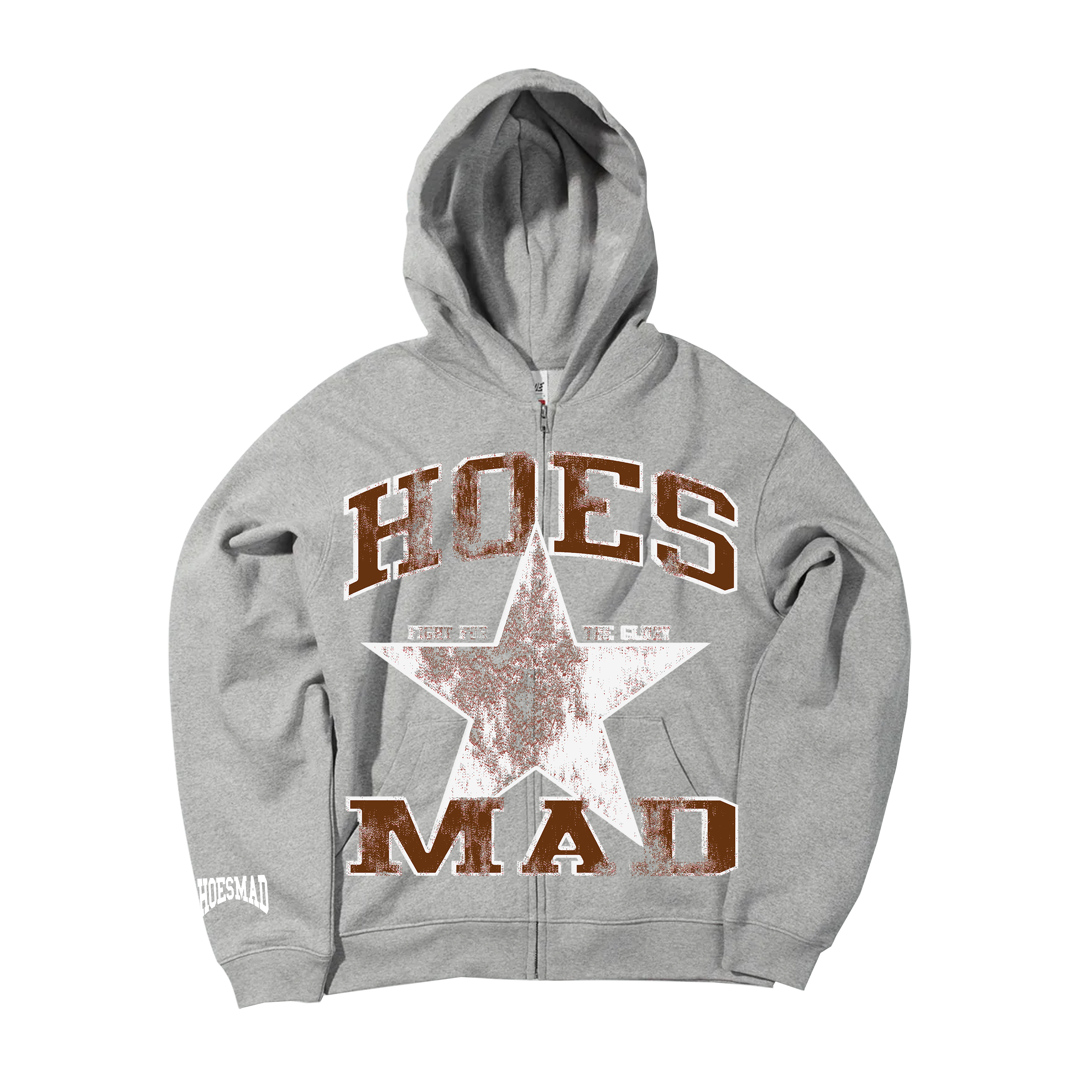 Hoes Mad Fight For Glory Zip Up Hoodie (Grey/Brown)