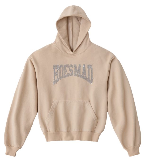 Hoesmad No Drawstring Rhinestone Hoodie (Beige)